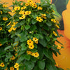 Suzanne-met-de-mooie-ogen, oftewel Thunbergia alata Sunny Susy®, is een uitstekende keuze voor wie een levendige oranje kleur wil toevoegen aan een balkon of border. Deze klimplant gedijt goed in half-schaduw en bereikt een hoogte van wel 200 cm, ideaal voor het creëren van privacy. Met een bloeitijd in oktober biedt ze laat in het seizoen nog kleur, terwijl haar matige waterbehoefte het onderhoud eenvoudig maakt. Geniet van een tropische uitstraling in je tuin met deze charmante en relatief winterharde plant tot -5°C.